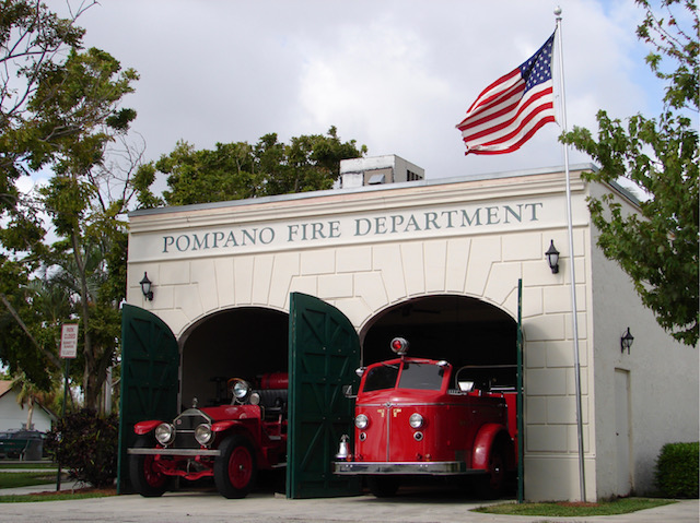 The City of Pompano's first Fire station, located at 217 NE 4th Avenue Pompano Beach, Florida. Built in 1926 to house their first Fire Engine, a 1926 American Lafrance type 75 triple combination. Which now contains Pompano's first and second working Fire Engines along with photographs and artifacts relating to the history of firefighting in Pompano Beach.